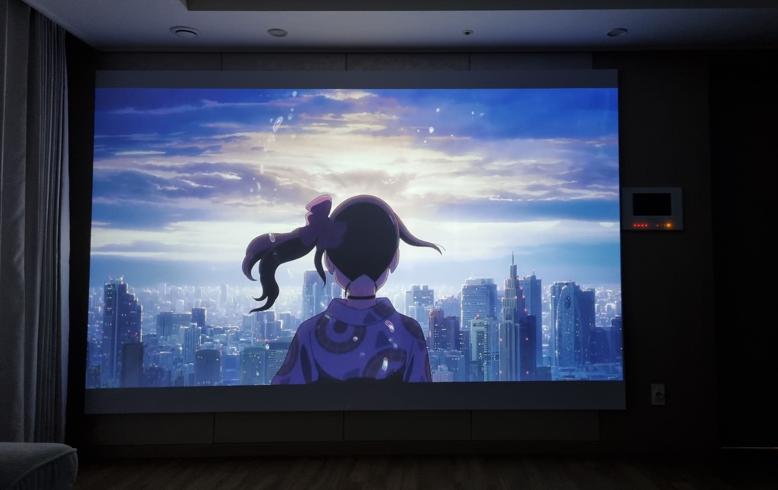 스크린이 거실 벽 한면을 다 채우니 정말 극장에 온 기분입니다.